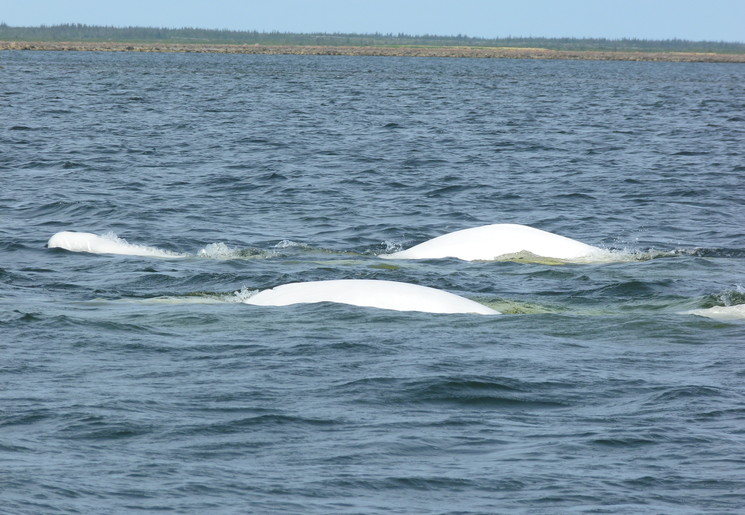 Vanaf Churchill vlieg ik samen met enkele medereizigers met een helikopter naar een zeer afgelegen lodge. Op een gegeven moment wijst de piloot verwoed naar beneden. Hij maakt nog net geen duikvlucht, maar wel een rondje boven het zeewater. Onder ons zwemt een ijsbeer in het water. Even later zien we veel meer witte stippen in het water. De piloot gaat opnieuw wat lager vliegen en we zien een grote school beluga’s. Dit zijn witte dolfijnen, maar ze worden ook witte walvissen genoemd.
