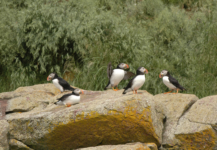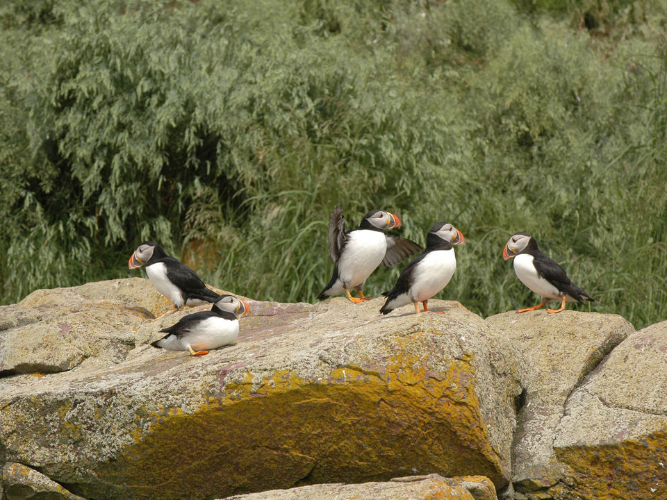 Op zo’n 30 minuten rijden buiten Saint John’s ligt Bay Bulls, de starthaven voor tochten op zee. Ga aan boord en bezoek het voedergebied van bultruggen en (dwerg)vinvissen. In de zomermaanden komen deze zeewezens massaal naar dit gebied. Het is een voedselrijk gebied. Je komt langs Witless Bay, waar veel papegaaiduikers aan land komen om te broeden. Maar ook andere zeevogels zitten aan...