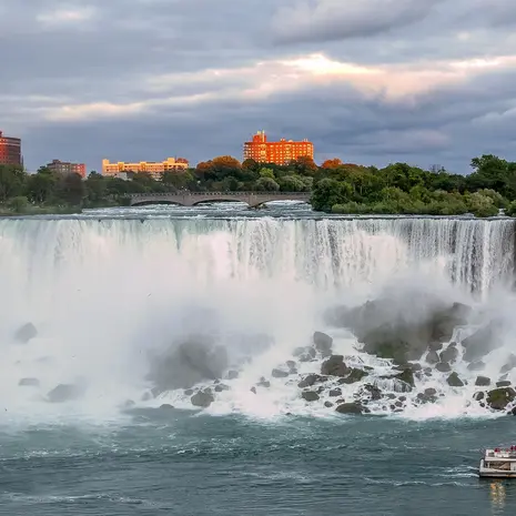 Van veraf hoor je het water al naar beneden kletteren en het is indrukwekkend als je voor de watervallen staat. De waterval bestaat uit drie delen, de Horseshoe Falls, de American Falls en de Bridal Veil Falls en ligt op de grens met Amerika. De brug die Canada en Amerika verbindt, Rainbow Bridge, is de plek om te genieten van een panoramisch uitzicht.