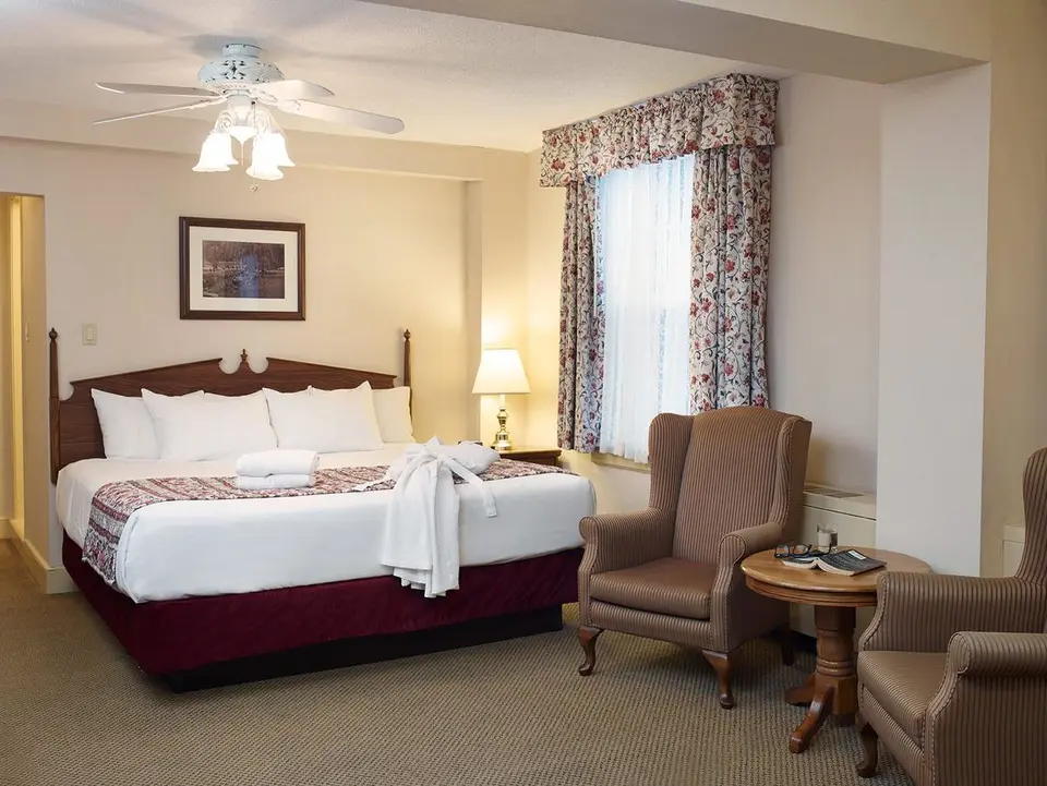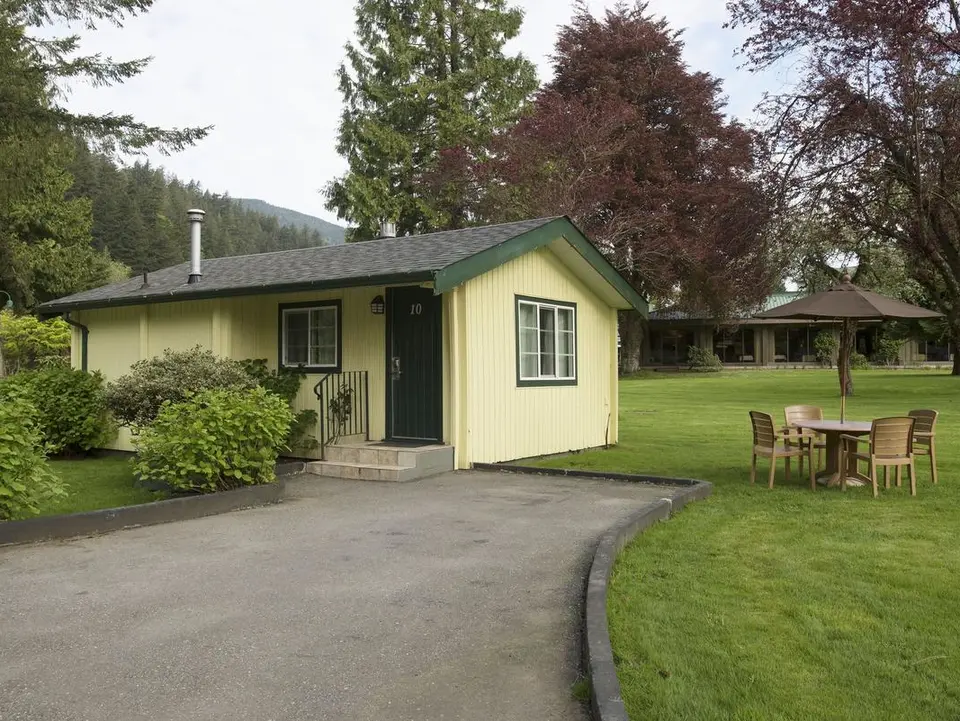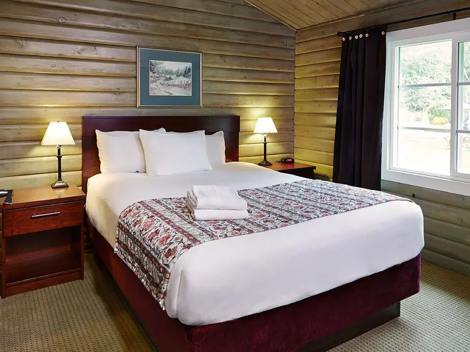Er zijn kamers en cottages. Sommige kijken uit op het fotogenieke Harrison Lake en Mt. Breckenridge.