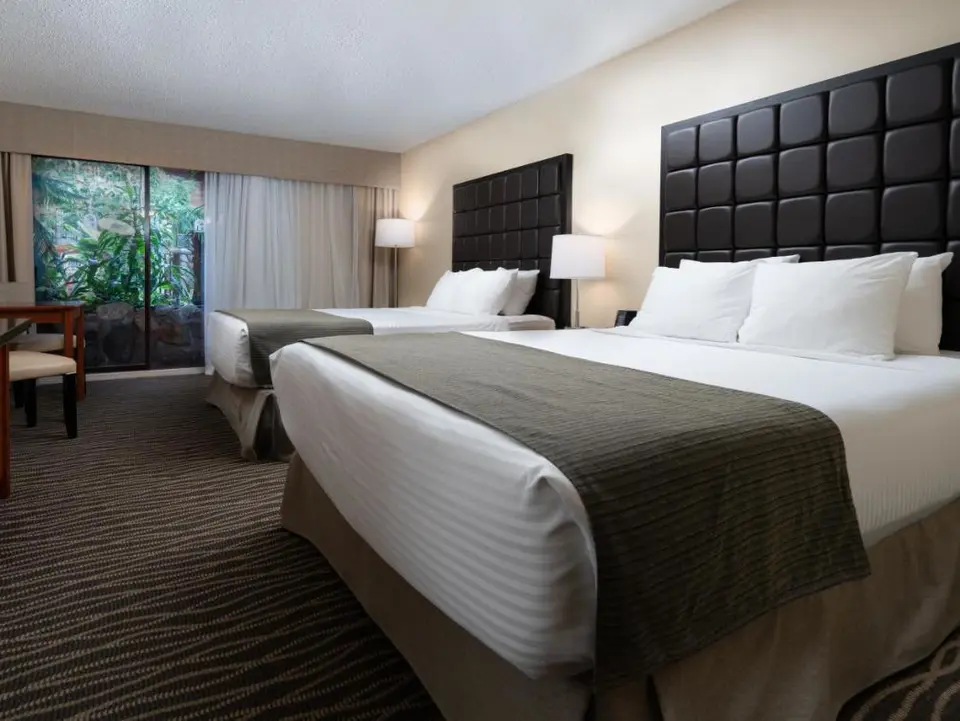 Er zijn veel verschillende kamertypes in dit hotel. De verschillen tussen de kamers zijn niet enorm groot en alle kamers voldoen prima. Geef je bij boeking aan of je voorkeur uit gaat naar een kamer met één Kingsize bed (één groot tweepersoonsbed) of naar een kamer met twee Queensize bedden (twee twijfelaars). Deze keuze heb je in bijna ieder Amerikaans hotel. Zowel vier volwassenen als gezinnen met maximaal twee kinderen onder de 12 jaar kunnen bijna in alle hotels in één kamer met twee Queensize bedden verblijven.