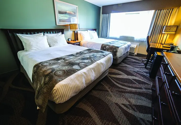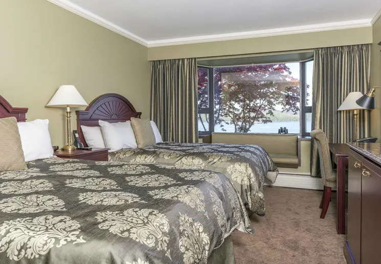 Ervaar het adembenemende uitzicht op de haven van Prince Rupert, de ongerepte bergen en adelaars die hoog in de lucht zweven vanuit je comfortabele en klassiek ingerichte kamer.