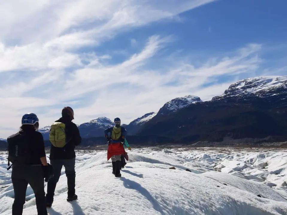 Je rijdt naar de Exploradores vallei en de gediplomeerde gids geeft uitleg over de hike. Een ijshike is niet moeilijk, maar wel inspannend. Je begint echter met een wandeling door het bos. Het pad voert je naar een punt met uitzicht over de immense ijsvlakte. Dan begint het deel over het ijs. In het begin liggen er nog veel stenen en zand en het duurt wel zo’n 1,5 uur voordat je bij het witte, ongerepte ijs aankomt. Je hoort en voelt de ijsmassa onder je “leven”. Je loopt, neemt een kijkje in ijsgrotten en hoort verhalen over de gletsjer.