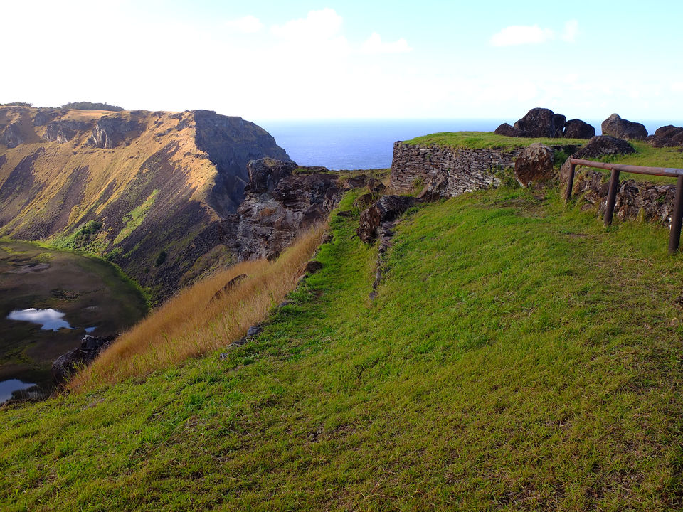 ’s Morgens maak je een rit naar de uitgedoofde vulkaan Rano Kau en het ceremoniële dorp Orongo. Daar hoor je meer over het verleden, de cultuur en de geschiedenis van de birdman-cultus van Paaseiland. Ook zie je diverse rotstekeningen. Vervolgens naar de Ahu Vinapu, een offerplaats.