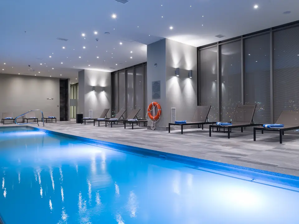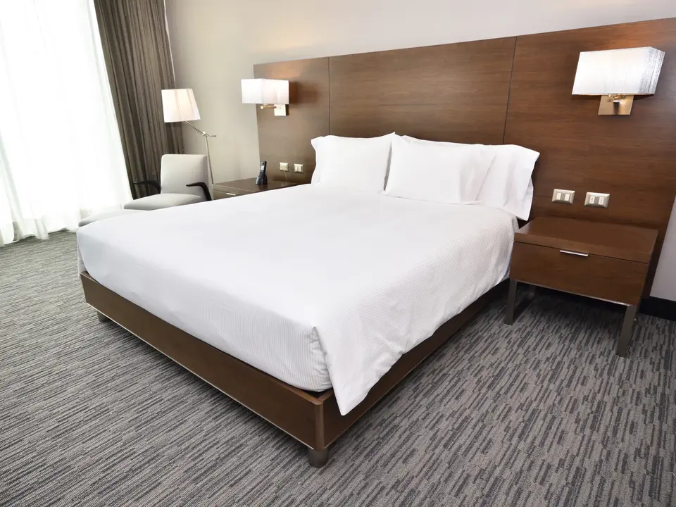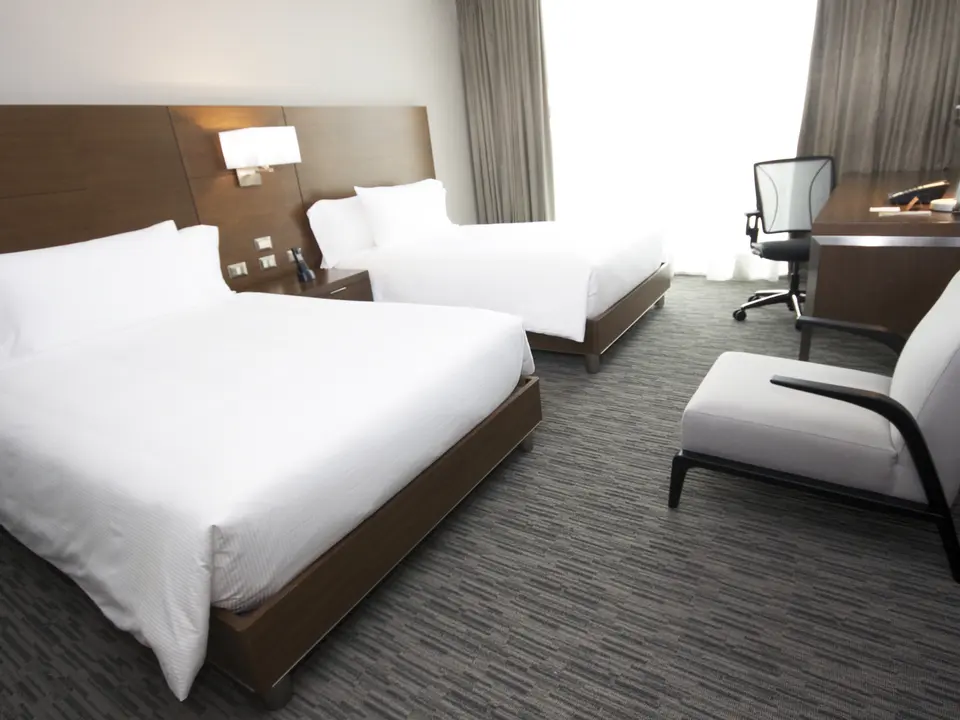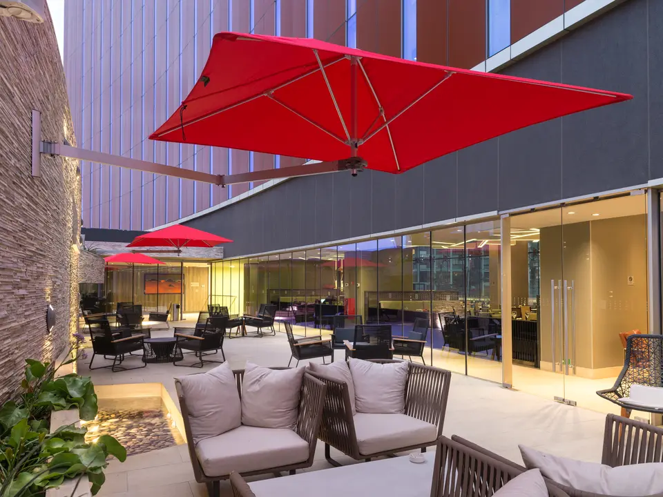 Modern, groot hotel aan het strand. Nette kamers. Vlakbij een casino.
