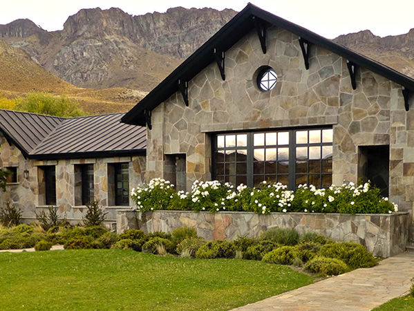 Knusse lodge van buiten van steen, van binnen met veel hout ingericht. Ideaal uitgangspunt om naar het Parque Nacional Patagonia te gaan.