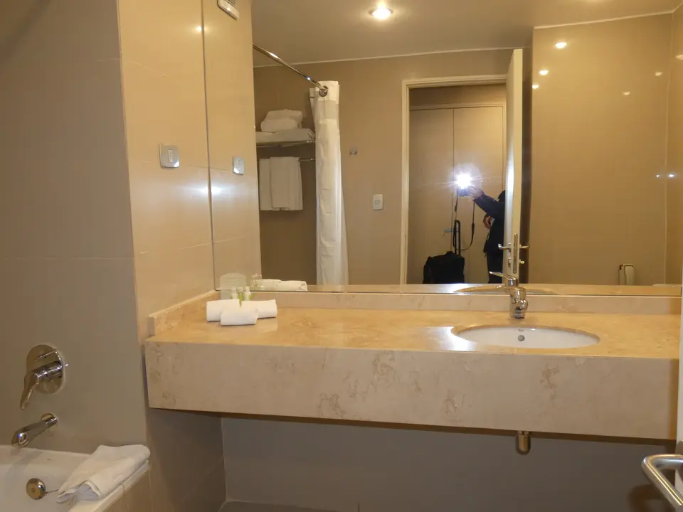 Vanaf het luchthavengebouw steek je de straat over en bevind je je al bij de ingang van het Holiday Inn Airport Hotel. Voor alle andere hotels op de luchthaven is er vervoer met een shuttlebus nodig, voor dit hotel niet. Het hotel ligt aan de drukke weg waar aankomende passagiers opgehaald worden. De isolatie in het hotel is echter zeer, zeer goed. En je hebt geen overlast van vliegtuiglawaai, passagiers en vervoersmiddelen. Als je niet in het hotel wilt eten, is er een restaurant op de luchthaven waar je terecht kunt. Er is ook een soort kruidenier. De stad ligt op een half uur rijden.