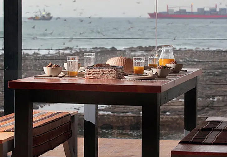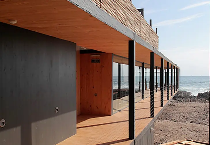 Wat een bijzondere architectuur! Heel strak en minimalistisch met glas en hout gebouwd. Direct op het strand gelegen. Wat je betreft de beste plek om te verblijven in Arica.