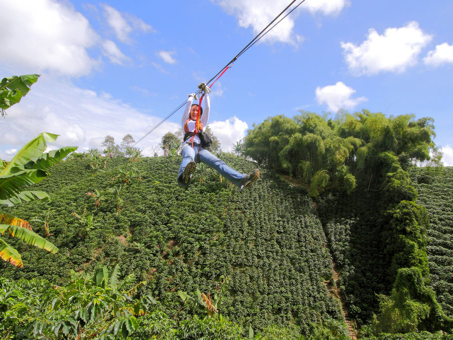 Tussen de steden Armenia en Pereira is de langste en hoogste canopy van Colombia. Je bungelt maximaal 60 meter boven het aardoppervlak en bereikt een snelheid van 80 kilometer per uur. Deze ervaring komt het dichtst in de buurt van vliegen. Het is een sensationeel gevoel om aan de touwen door de lucht over de koffieplantages te suizen. Kwart dag. Inclusief: transport, Engelssprekende gids, ziplin...