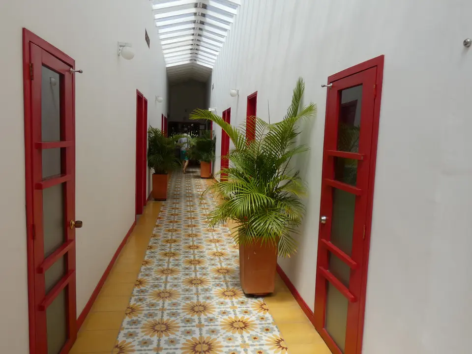 Iets verder op het terrein staat het oorspronkelijke huis, de haciënda. Hier zijn zes kamers gevestigd. Het is hier rustiger, maar niet alle kamers hebben hier een eigen badkamer. Iedere kamer is anders ingericht, maar allemaal met antieke meubels. Ook hier zijn er weer kamers met een tweepersoonsbed en kamers met twee aparte bedden. Authentieker en rustiger, maar dus niet allemaal met eigen badkamer.