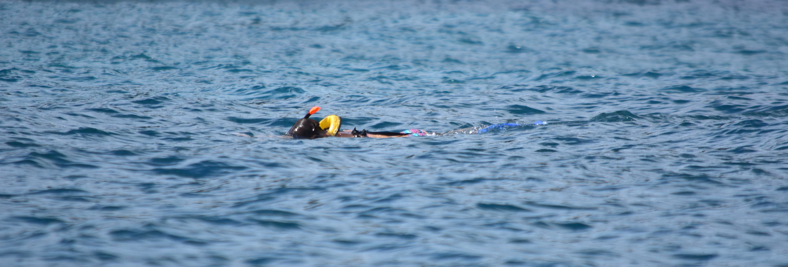 We krijgen ons snorkelmateriaal en maken ons klaar om in de zee te duiken. We moeten onze gids volgen en zien vele vissen en wat koraal. Het meeste koraal heeft helaas hun kleur al verloren, maar nog steeds is het geweldig om hier te mogen snorkelen. Plotseling zwem ik oog in oog met een (kleine) schildpad. De schildpad dobbert wat voor me rond en zwemt dan weg. Wat een geweldige ervaring!