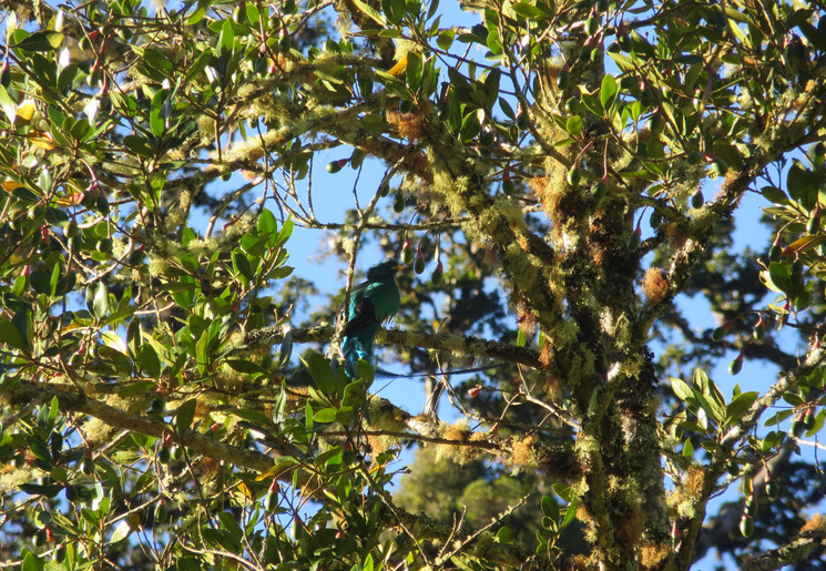 De magische quetzal spotten kan het best in het nevelwoud van Los Quetzales National Park. Je vindt hier het pittoreske plaatsje San Gerardo de Dota, midden in een vallei langs de Rio Savegre. Dit gebied trekt vogelliefhebbers aan van over de hele wereld. Allemaal opzoek naar die ene kleurrijke en bijzondere vogel, de quetzal. De quetzal eet voornamelijk wilde avocado’s en wordt dan ook vaak gespot in een avocadoboom. Zowel de mannetjes als vrouwtjes hebben een groene kop, rug en vleugels, een rode borst en witte veren. De mannetjes herken je daarnaast aan de extra lange en sierlijke groene staartveer die ze, als ze in hun nest zitten, buitenboord hangen. De quetzal kan niet in gevangenschap leven en symboliseert daarom vooral de vrijheid.