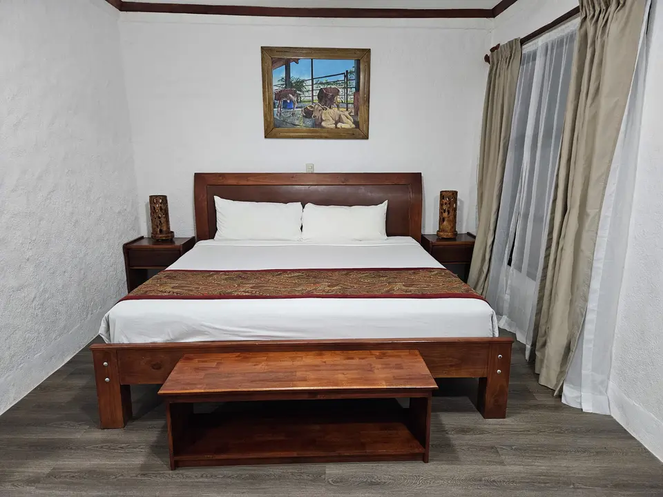 Je verblijft in een oude boerderij. De 84 kamers hebben van de buitenkant de originele staat behouden. Binnen is de kamer modern ingericht. De houten meubels zijn allen handgemaakt door arbeiders uit de omgeving. In de kamer heb je airconditioning, koffie-en thee faciliteiten, een ventilator, kluisje en een ruime badkamer. Je hebt een eigen terras waar je kunt genieten van de omgeving.