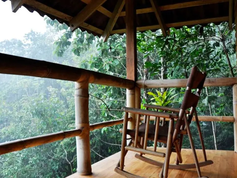 Een kleinschalige lodge met 8 kamers. Vanaf je balkon kijk je uit over de groene omgeving. Even lijkt het alsof je in een boomhut slaapt. De houten huisjes zijn comfortabel, maar eenvoudig ingericht. Er is een ventilator, comfortabel bed en badkamer. Naast het prachtige uitzicht, heb je op het balkon ook de kans om de eerste vogels te spotten.