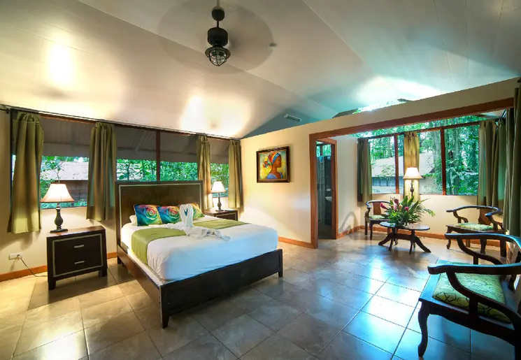 Bij de accommodatie kun je in de middag een wandeling maken met een gids door de jungletuinen met kleurrijke bloemen. Grote leguanen liggen te zonnen op het gras, en hoog in een boom hangt een luiaard. En dat allemaal in ‘jouw’ achtertuin. Er is ook een ‘greenhouse’ op het terrein waar je kleine en kleurrijke (gif)kikkertjes kunt spotten.