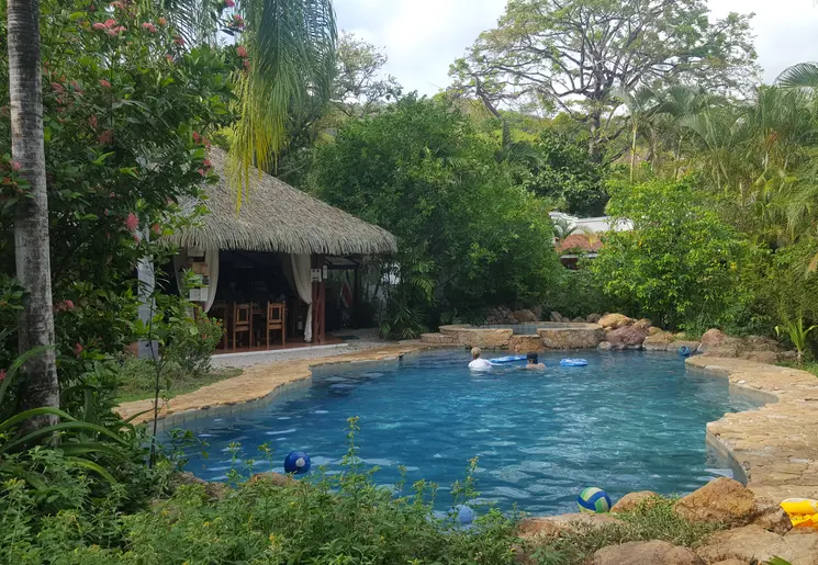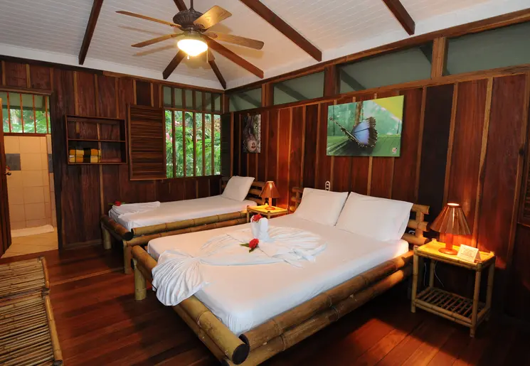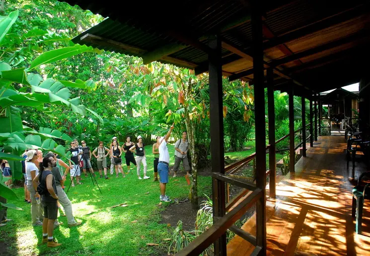 Bij de accommodatie kun je in de middag een wandeling maken met een gids door de jungletuinen met kleurrijke bloemen. Grote leguanen liggen te zonnen op het gras, en hoog in een boom hangt een luiaard. En dat allemaal in ‘jouw’ achtertuin. Er is ook een ‘greenhouse’ op het terrein waar je kleine en kleurrijke (gif)kikkertjes kunt spotten.