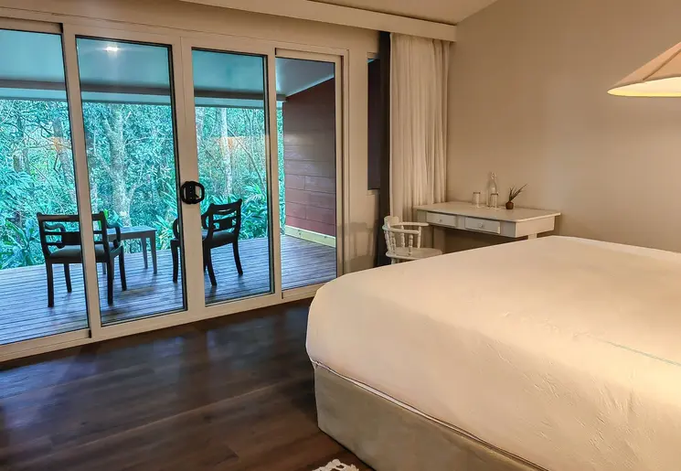 Bij de accommodatie kun je in de middag een wandeling maken met een gids door de jungletuinen met kleurrijke bloemen. Grote leguanen liggen te zonnen op het gras, en hoog in een boom hangt een luiaard. En dat allemaal in ‘jouw’ achtertuin. Er is ook een ‘greenhouse’ op het terrein waar je kleine en kleurrijke (gif)kikkertjes kunt spotten.