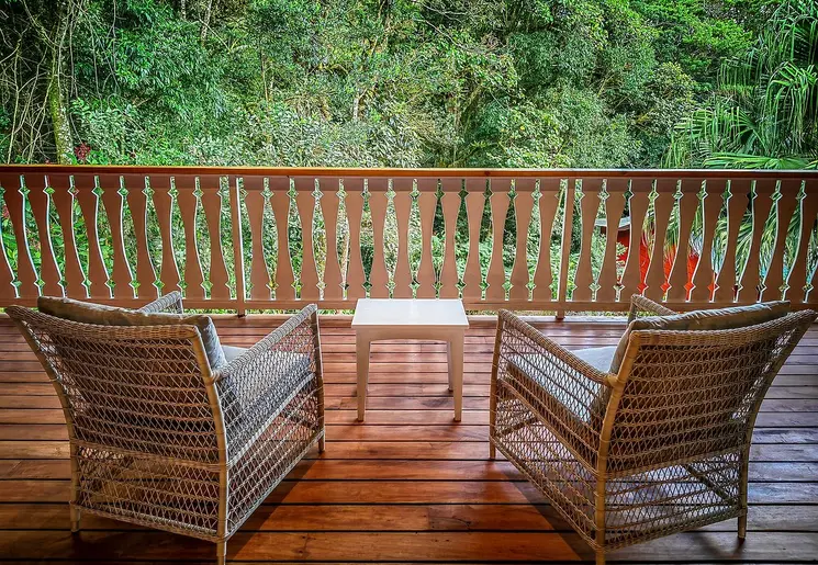 Vlakbij het Monteverde Cloud Forest Natuurreservaat ligt Cloud Forest Lodge. Vanaf je terras heb je uitzicht op de omliggende bergen en de groene tuin.