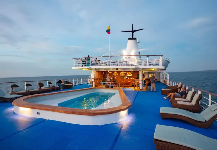 Wat een luxe! Een cruiseschip met zwembad en jacuzzi en de route is helemaal onvergetelijk. Tussen de noordelijke eilanden van de Galapagoseilanden vaar je door. Je legt aan of het schip gaat voor anker om vervolgens met een dinghy naar de kust te gaan. De dieren in dit gebied zijn uniek. Of het nu leguanen of reuzenschildpadden op het land zijn, of zeeleeuwen en haaitjes in zee. En al die vogels. Professionele gidsen begeleiden jou.