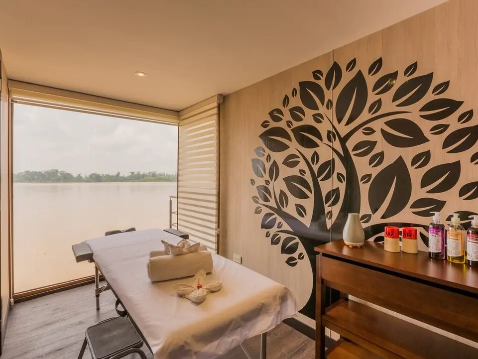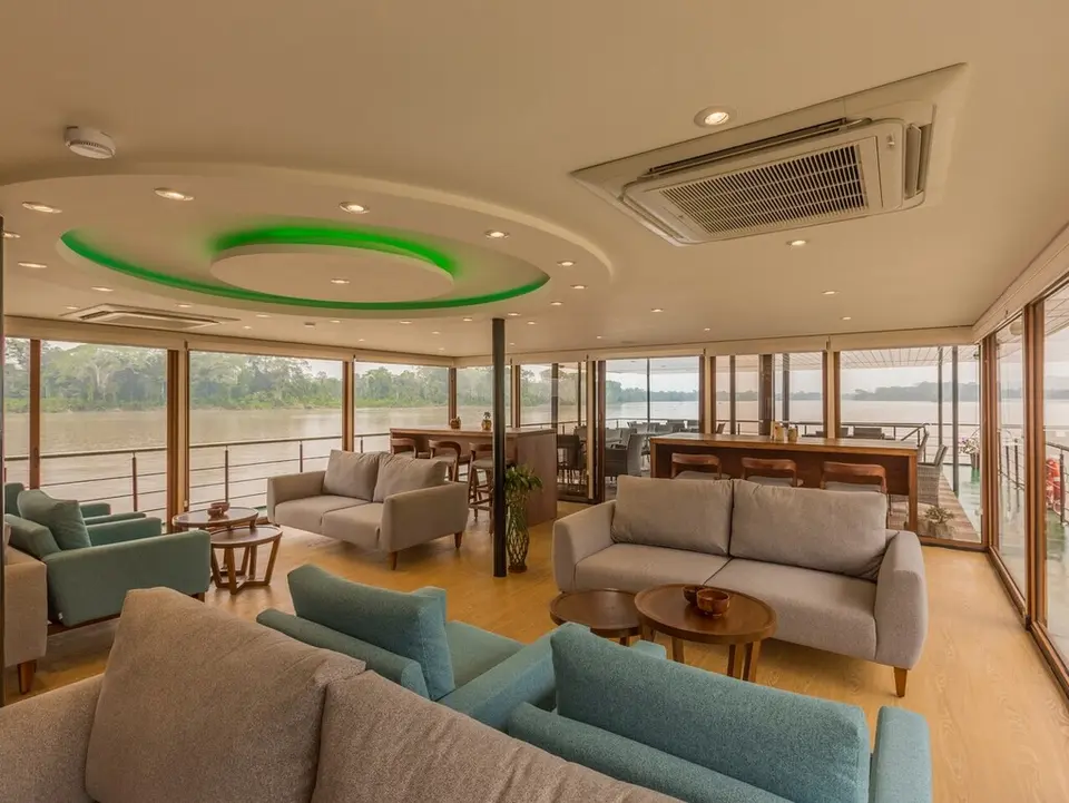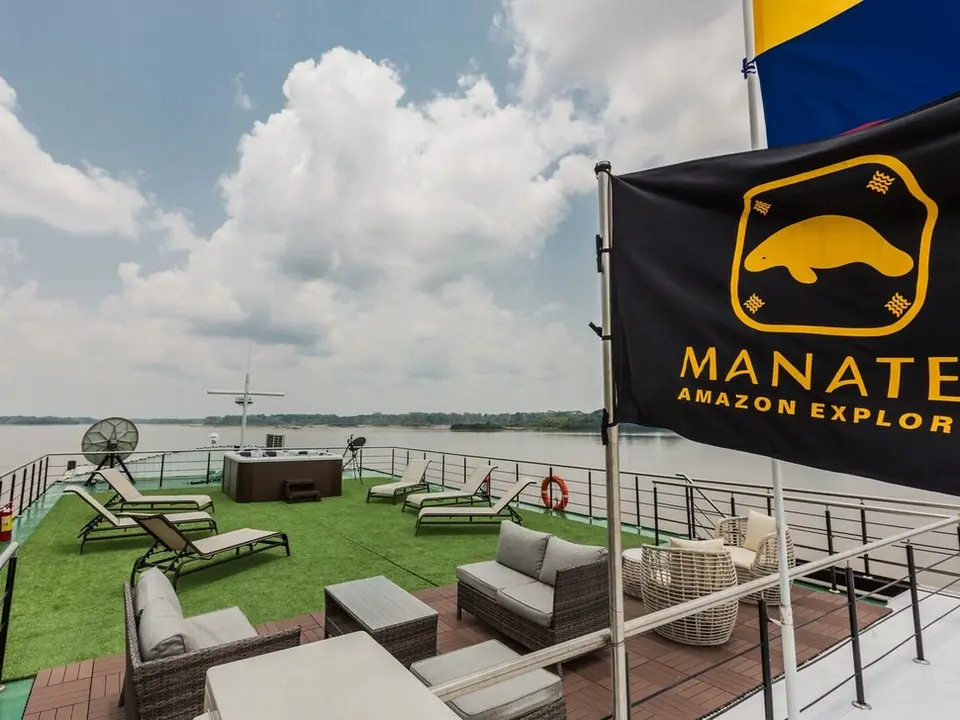 Een luxe riviercruiseschip, het wordt een boutique cruise genoemd. De opbouw is van hout. Er zijn vier lagen. Dit luxe riviercruiseschip is in 2017 gebouwd. De boot is 37 meter lang. Er passen maximaal 30 personen aan boord van de Manatee. Op het laagste dek zijn de lobby en het restaurant. Ook heeft de bemanning hier zijn slaapruimte en worden je maaltijden bereid. Op het tweede dek zijn tien standaardhutten. Elke hut heeft de naam van een dier dat in dit gebied leeft. Op het derde dek zijn ook nog vier kamers. Dit zijn de deluxe hutten. Er is een bar, een lounge met gezellige zitjes en een dek met stoelen. Tot slot is er nog het zonnedek met een jacuzzi, ligstoelen en zitjes.