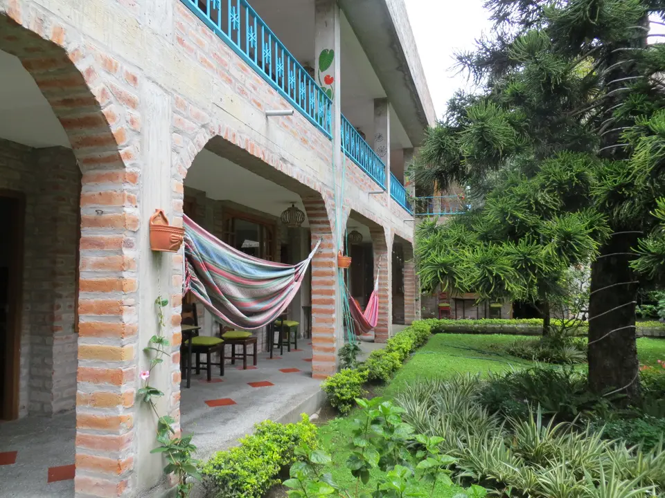 Kleurrijk en sfeervol hotel in het centrum van Baños. Je loopt in een paar minuten naar het centrale plein van Baños. Er is bij de inrichting veel gebruik gemaakt van Ecuadoraanse kunst en kleden. Dit geeft een fijne sfeer aan het hotel.