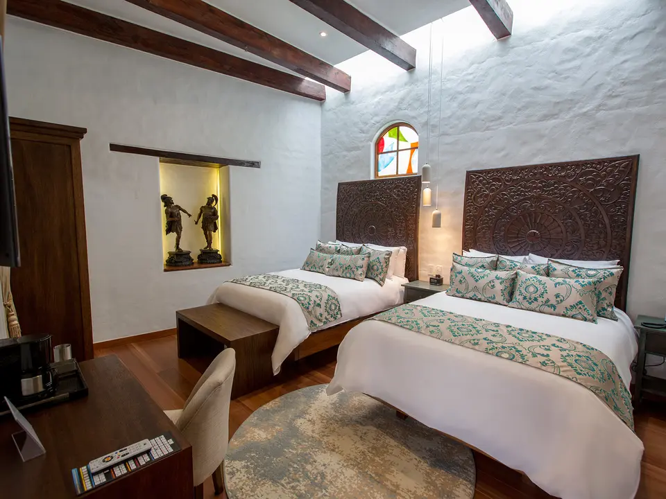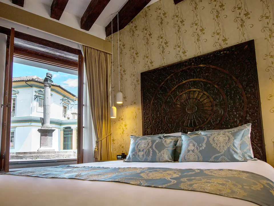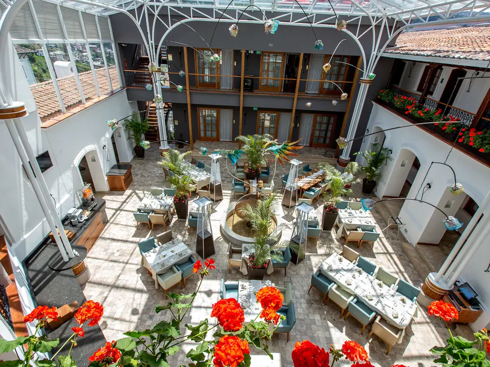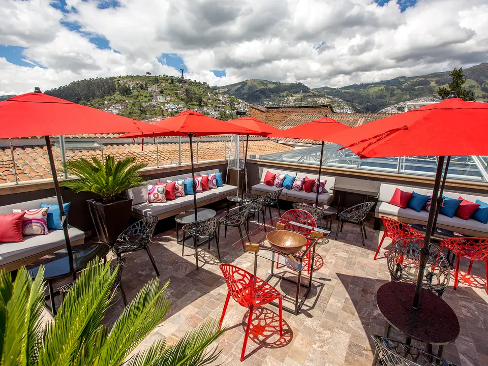 Prachtig gerestaureerd herenhuis in het oude centrum van Quito. Stijlvol en luxe, kleinschalig en sfeervol. Bestel een drankje bij de rooftopbar en kijk uit over de stad.