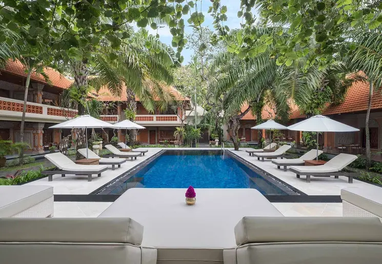 Een 3*-hotel met de allure van 4*, direct aan het witte zandstrand van Sanur. Leuke Balinese stijl huizen in grote tuin.