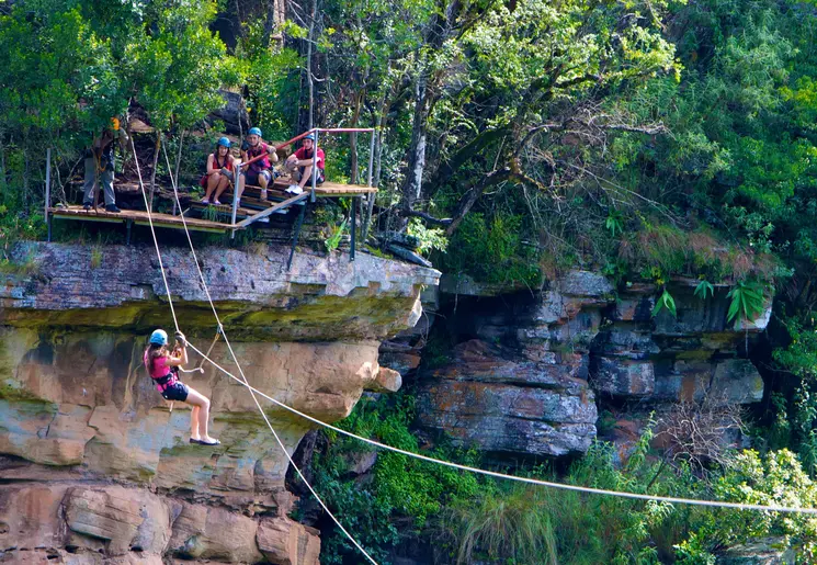 De kloof van de Groot Letaba-rivier met zijn watervallen vormt het decor voor een spectaculaire excursie; Ziplinen! Als Tarzan slingeren jullie van boom naar boom. Jullie worden wegwijs gemaakt in je uitrusting, maken een eerste proefvlucht vlak boven de grond en daarna gaat het beginnen. Hup, omhoog de boom in en dan wandelen en zweven jullie van platform naar platform, soms op hoogtes van 30 tot 40 meter boven de grond. De gidsen kennen het traject op hun duimpje en vertellen in geuren en kleuren over de flora en fauna van de Magoebaskloof.
