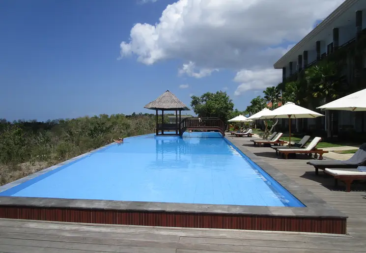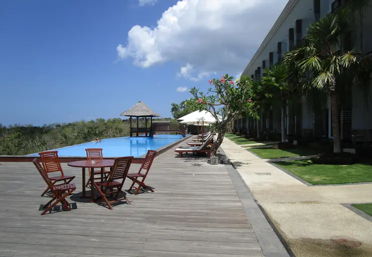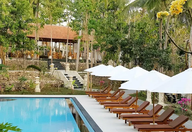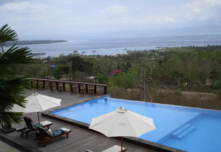 Hooggelegen met uitzicht over zee en Bali. Bij goed weer kun je zelfs de Gunung Agung vulkaan op Bali zien liggen. Op dit moment het meest luxe hotel op Nusa Penida, met infinity pool. Eten in het restaurant is een aanrader!