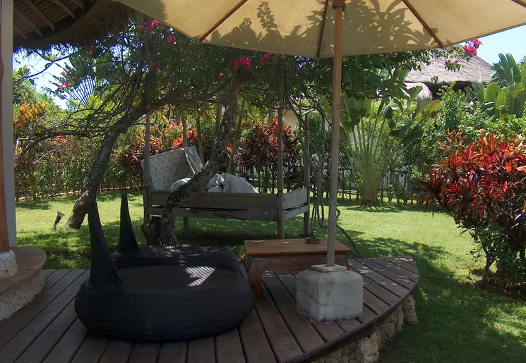 Hoog op een klif, met weids uitzicht over zee, ligt Balangan. Beneden aan de klif wacht een intieme baai met wit zandstrand, een paar ligstoelen en eenvoudige cafeetjes. Het strand is geliefd bij surfers die hier de golven trotseren. Huur een fiets of een brommertje om de rustige omgeving van Balangan te verkennen.