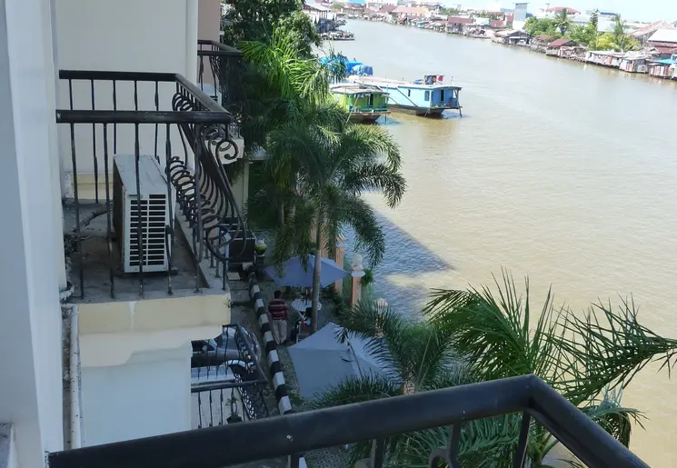 Centraal gelegen in Banjarmasin. Het leuke is dat dit hotel aan de rivier ligt. Heerlijk om vanuit je kamer naar het drukke leven aan en op de rivier te kijken!
