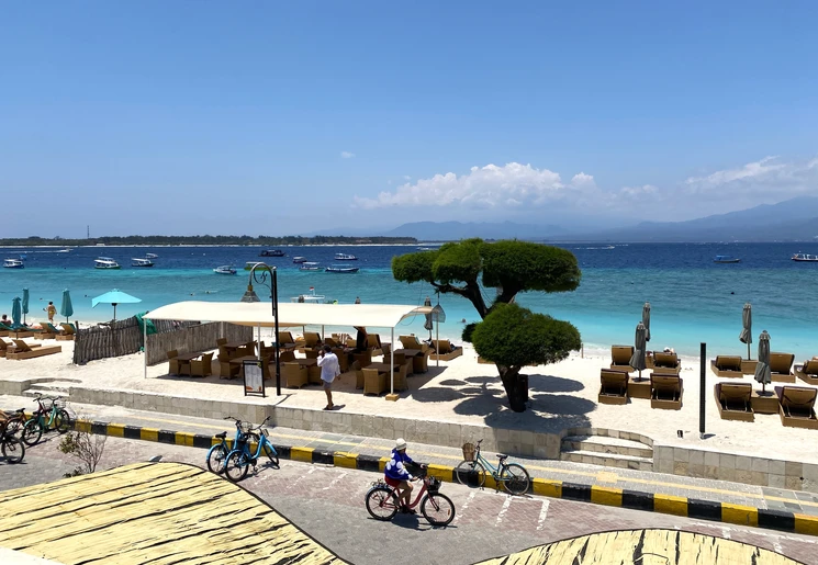 De 3 noordelijke Gili-eilanden liggen voor de noordwestkust van Lombok. Alle 3 de eilanden hebben prachtige, hagelwitte zandstranden. Gili Trawangan is het eiland waar de meeste hotels zijn. In het noorden van Gili Trawangan kan je zo de zee inlopen om mooie vissen en koralen te zien. Rondom het hele eiland loopt langs het strand een smal pad van ongeveer 8 kilometer. In ongeveer 2 uur wandel je het eiland rond. In het oosten van het eiland liggen de meeste hotels en hier zijn ook de meeste restaurants en bars. Voor de een is dat geweldig, een ander zal de reuring minder waarderen. Maar: er zijn ook stille stranden! In het noorden en het westen zijn enkele hotels, hier vind je nog de rust. En wil je naar de drukte: je bent er zo, overal zijn fietsen! En anders neem je een cidomo (paard-en-wagen).