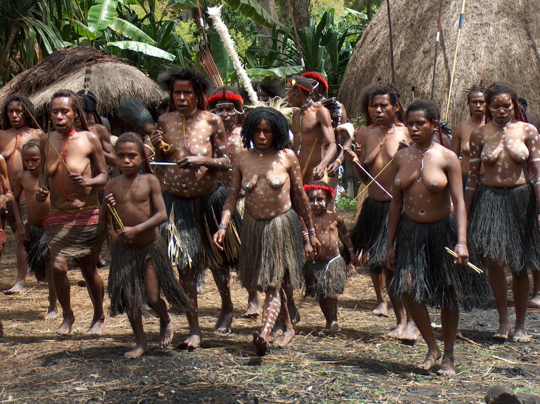 De mannen en vrouwen dansen tezamen en vervolgens wordt het varken gedood met pijl en boog en het vlees wordt gestoofd, daarna eet je samen met de dorpelingen.