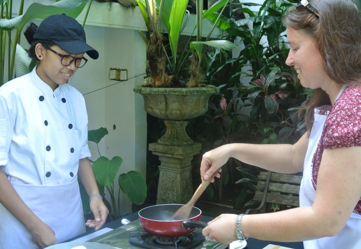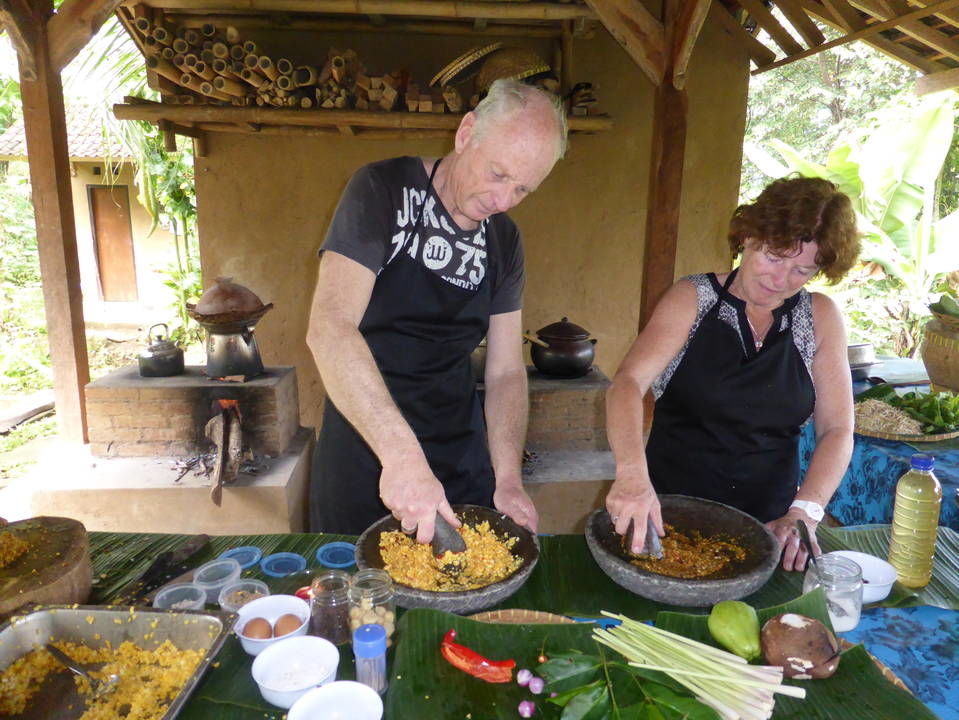 Bijzonder is het volgen van een kookcursus in een traditioneel Balinees dorp bij Ubud. Je wordt opgehaald bij je hotel en gaat naar de markt waar ingrediënten zoals groente, fruit, vis en vlees worden verkocht. Een gids geeft uitleg over het eten en de kruiden. Het is al leuk om te kijken naar alles wat er om je heen gebeurt. De ingrediënten voor de kookcursus worden gekocht. Dan naar het dorp L...