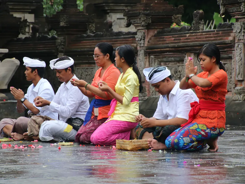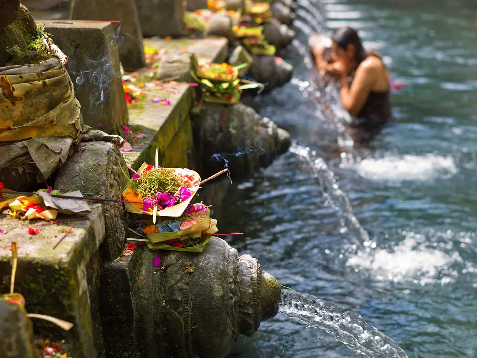 Op Bali is het bijzonder om het badritueel, de Melukat ceremonie, te ondergaan. Je geest en ziel worden gereinigd door een lokale priester. Je wordt opgehaald bij je hotel en naar de tempel van Sebatu gebracht. Sebatu is een bergdorp, dat op Centraal-Bali ligt, ten noorden van Ubud. Bij aankomst krijg je een sarong in bruikleen. Een hindoepriester ontvangt je en voert een reinigingsceremonie uit. In de Balinese cultuur is dit een traditie. De priester verwijdert negatieve invloeden, oftewel “klesa”. Na de ceremonie ga je naar het schitterend gelegen restaurant Puri Gangga voor een lunch.