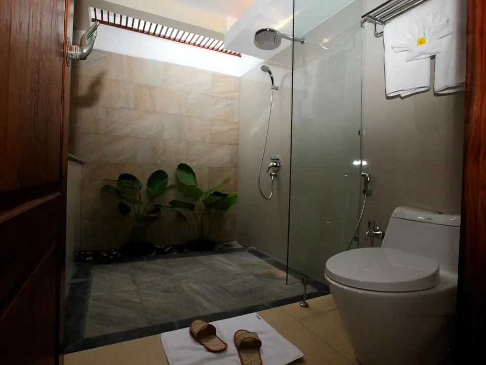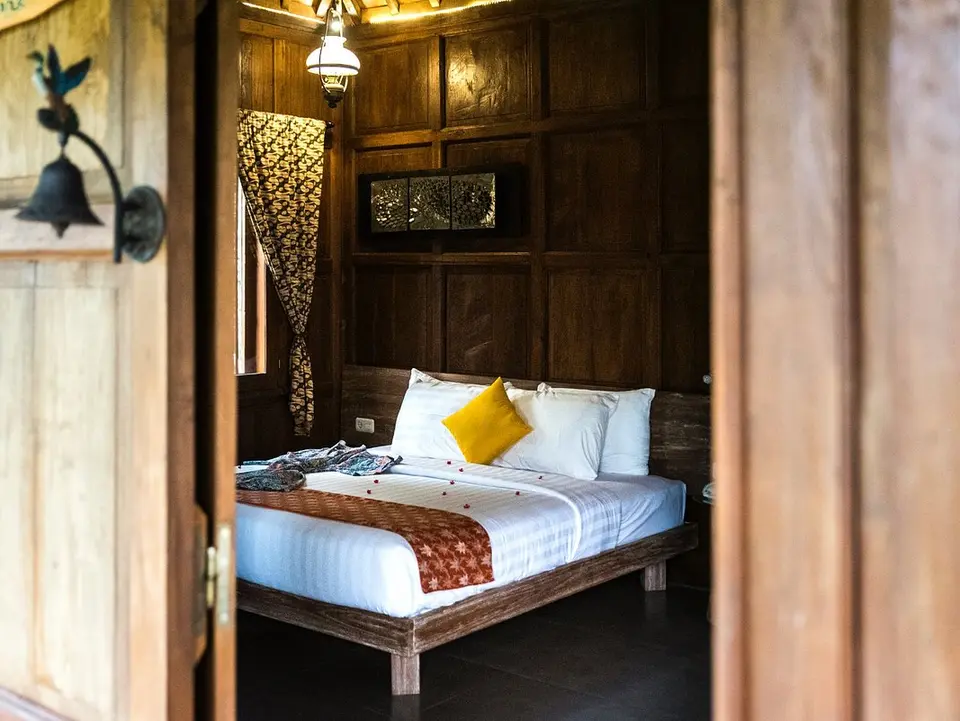Iedere bungalow straalt een authentieke, Javaanse stijl uit. De bungalows staan verspreidt door de tuin van het resort. Alle kamers hebben airconditioning, een eigen overkapt terras, televisie, kluisje en koelkast op de kamer. Je eigen badkamer heeft een bad en douche, een haardroger en gratis toiletartikelen. Op alle kamers is gratis Wifi te krijgen. Een extra bed kan in elk kamertype worden bijgezet.