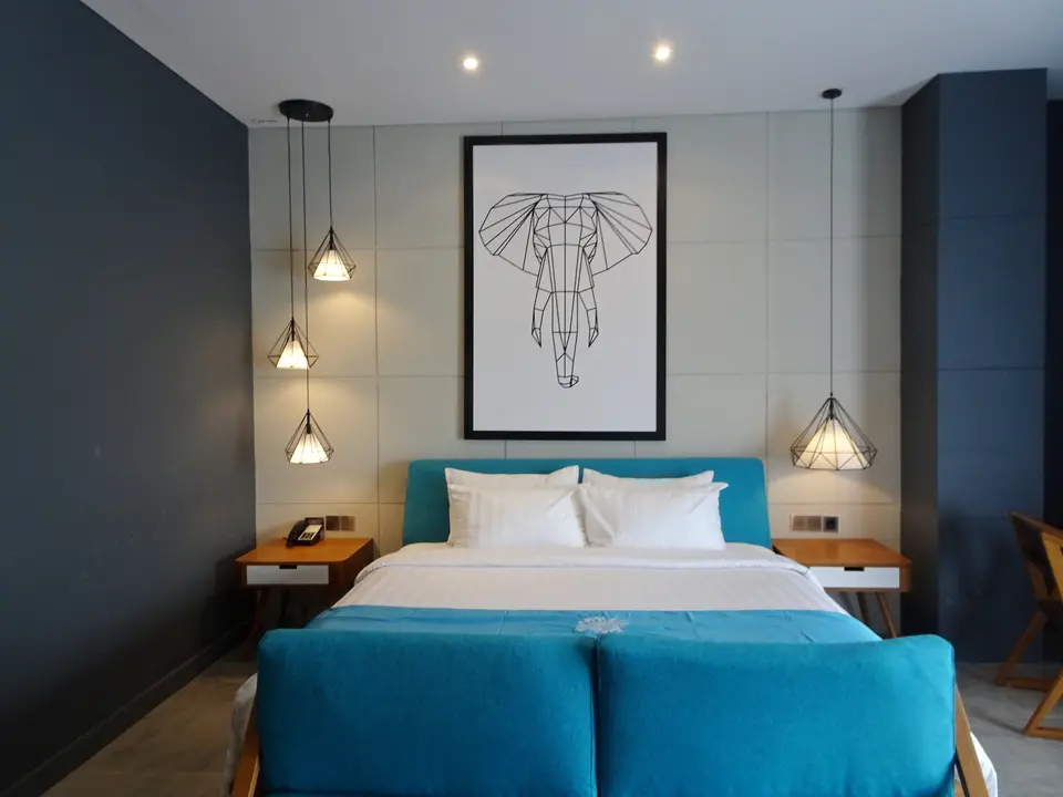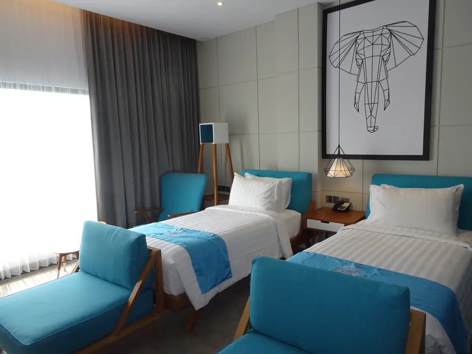 De kamers zijn allen modern en vrij strak ingericht, de kleur blauw vind je overal terug. Heel smaakvol.
