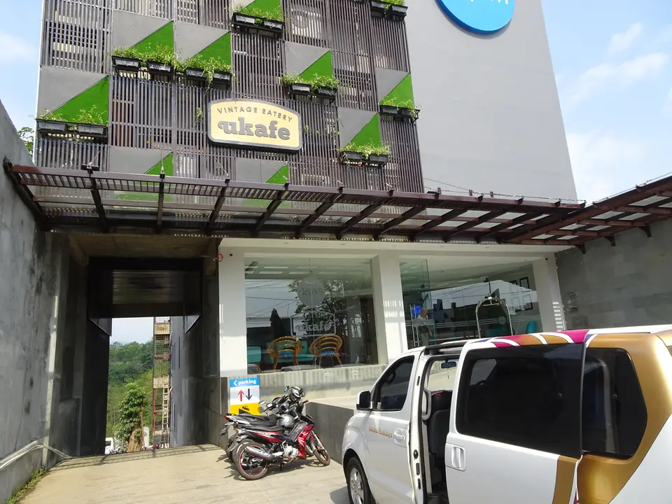In het stadje, ongeveer 10 minuten rijden naar het centrum. Aan de achterkant van het hotel is natuur (begroeide bergwand).