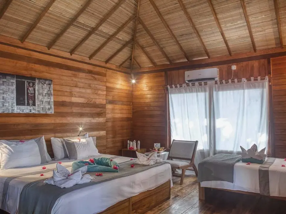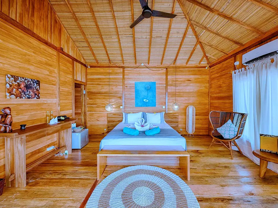 Kleinschalig en idyllisch. Je vindt dit een heel prettig en mooi resort. Alle kamers, cottages en villa’s zijn uit hout opgetrokken, evenals het interieur. Dit boutique-resort ligt direct aan zee, je loopt zo het water in en je zwemt meteen al boven de prachtige koralen, waar kleine vissen tussendoor krioelen. Snorkelen, maar natuurlijk ook duiken hier. Om het eiland loopt een rif; na enkele tientallen meters ‘stort’ de bodem naar beneden en zie je scholen vissen, terwijl ook de kans op een ontmoeting met dolfijnen en schildpadden behoorlijk groot is. De Bunaken-archipel is een toplocatie voor onderwaterwereld-liefhebbers.