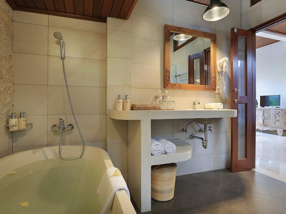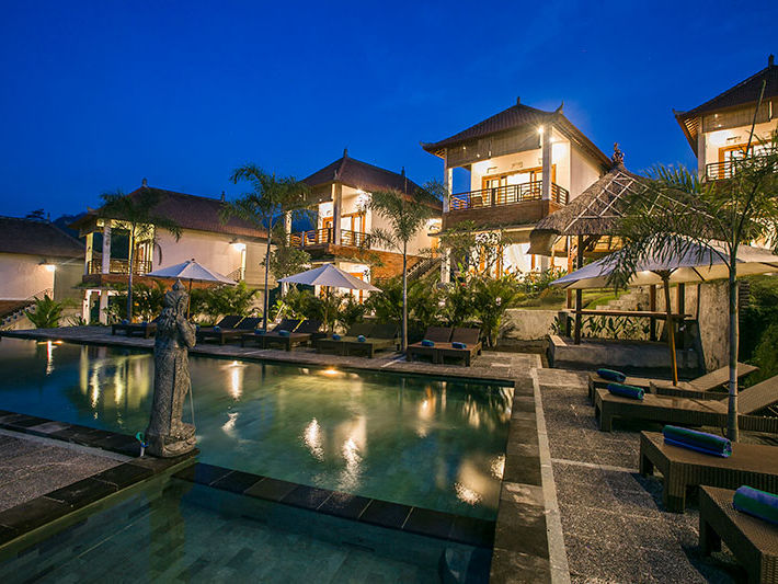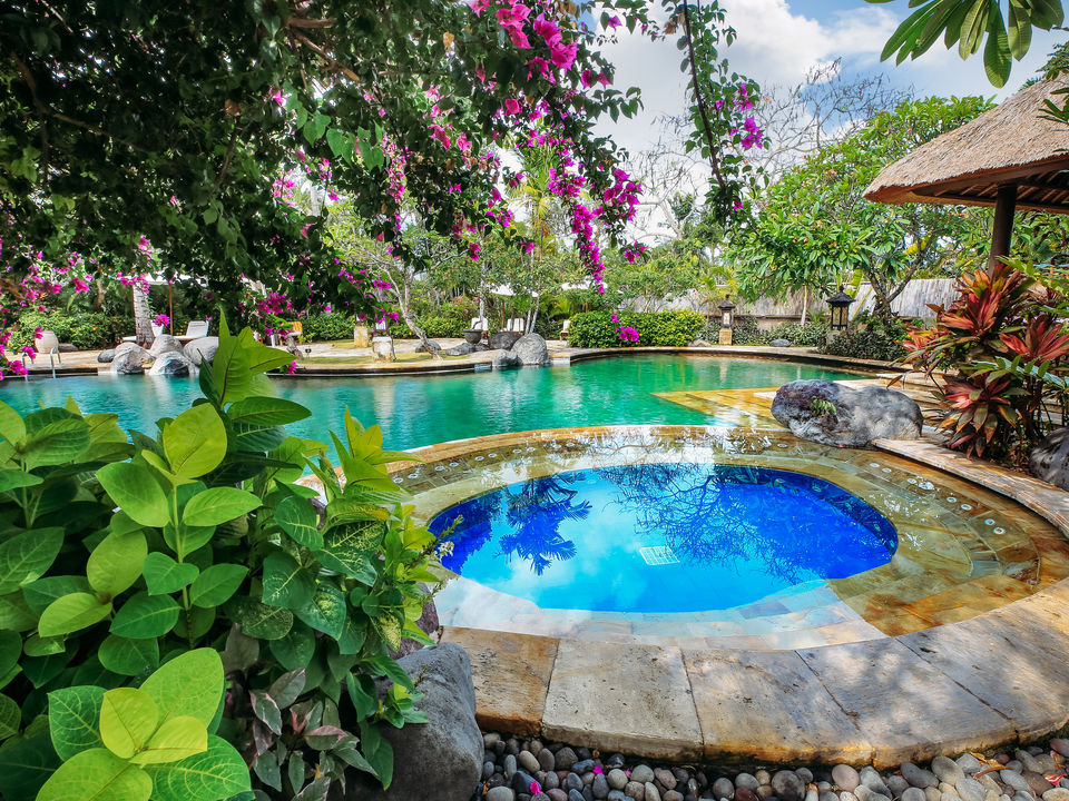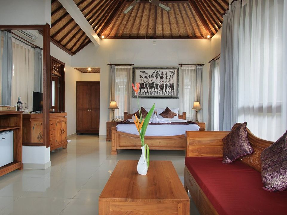 Je waant je in een Balinees dorp wanneer je in dit unieke, bijzondere en kleinschalige hotel verblijft. Het hotel ademt de typische sfeer en charme van Bali. Vanuit de traditionele Balinese architectuur, constructietechnieken en materialen is dit uit 26 bungalows bestaande resort gebouwd. Balinese houtsnijwerken, antiek en kunst tref je overal aan. Je hebt een eigen huisje met tuin tot je beschikk...