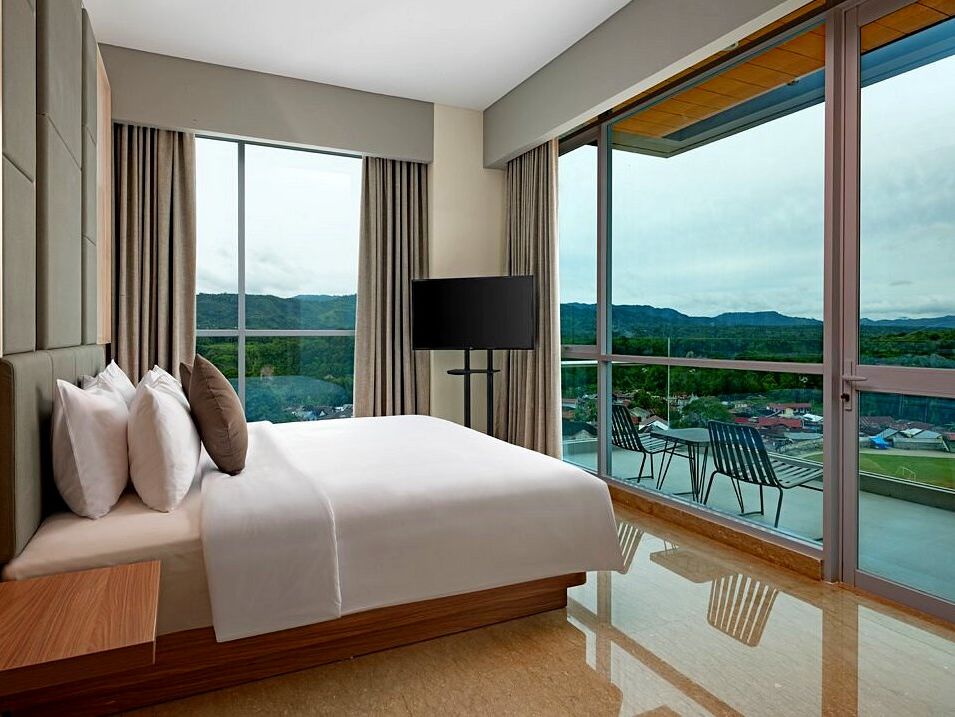 Vanuit het hotel zul je genieten van de panoramische uitzichten op het stadje en de bergachtige omgeving, vooral vanuit het restaurant op het dak! Je loopt in zo’n 10 minuten naar downtown Bukittinggi, waar je kunt kiezen uit meerdere leuke restaurantjes. Het Santika Hotel is een modern gebouw met mooie kamers.