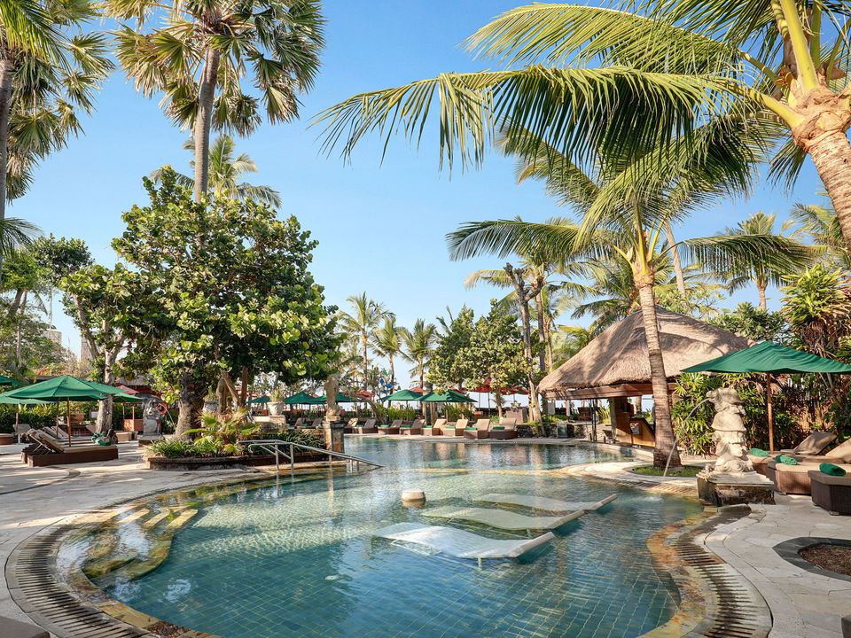 Prachtige traditionele bungalows met rieten daken en een moderne inrichting. Gelegen in een weelderige tropische tuin. De bungalows hebben allemaal een privé-terras. Hotel Legian Beach is een goed familiehotel, slechts door een wandelpad van het witte zandstrand gescheiden.