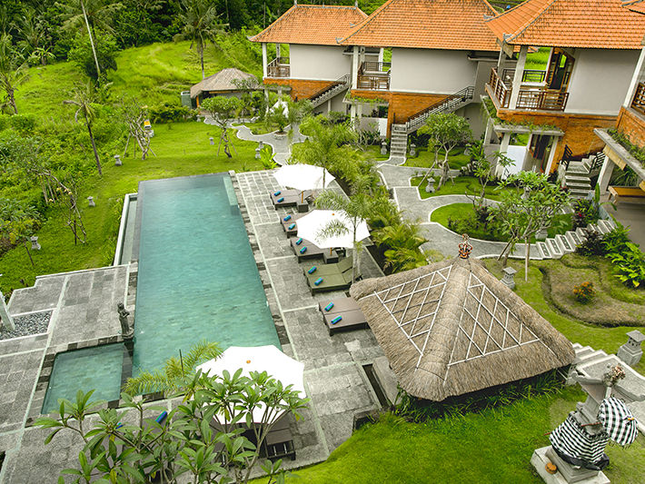 Kleinschalig boutiqueresort dat verscholen ligt in het binnenland van Bali. Weelderig groene en eindeloze sawa’s omringen de prachtige bungalows van dit resort. Bijzonder is dat een wandeling met een personeelslid is inbegrepen als je hier verblijft. Geniet van de schitterende, ongerepte omgeving en rust vervolgens uit in de jacuzzi naast het zwembad.