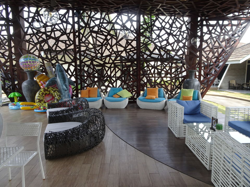 Er is naast de pendopo een soort lounge, een gezellige ruimte, waar je wat kunt drinken.