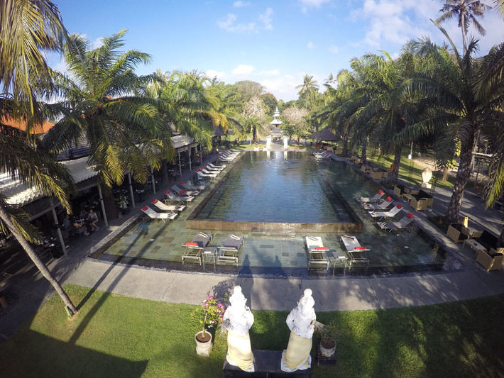 Een 3*-hotel met de allure van 4*, direct aan het witte zandstrand van Sanur. Leuke Balinese stijl huizen in grote tuin.