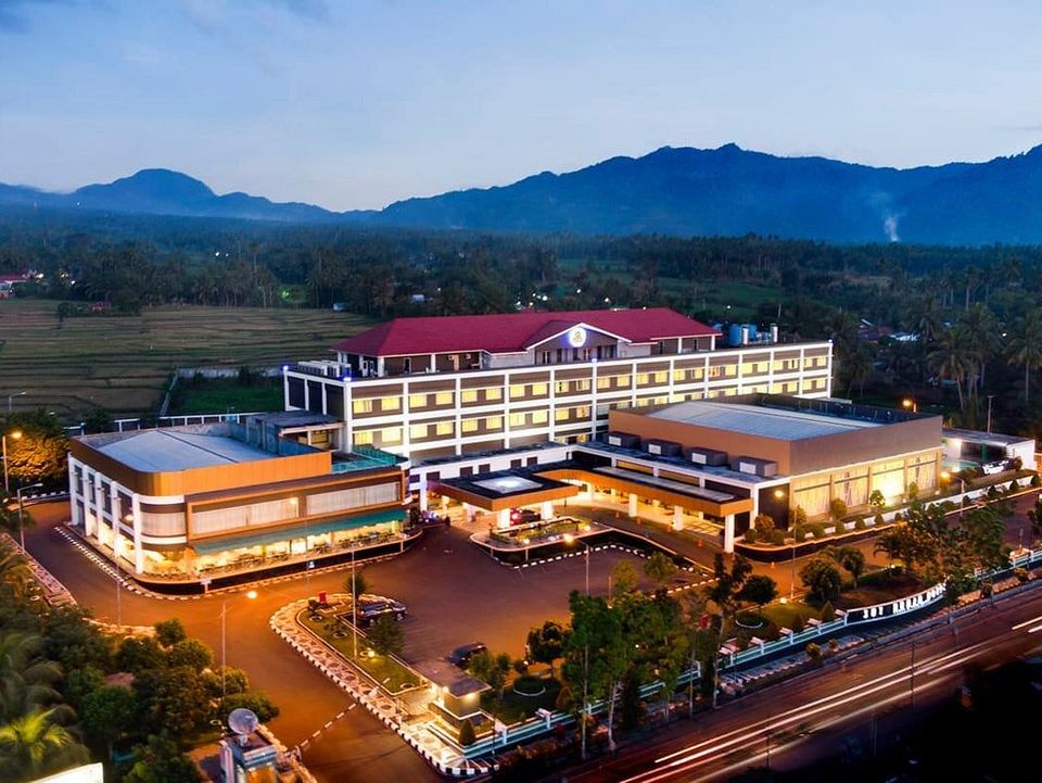 Een modern hotel, met afstand de meest luxe optie in de omgeving. Naar onze maatstaven een prima middenklasse hotel met 100 ruime kamers en suites en goede faciliteiten als een restaurant met zowel lokale als internationale specialiteiten, zwembad, spa en fitness centrum. Gelegen aan de rand van Kotamobagu, met als achtertuin rijstvelden en op de achtergrond de jungle en bergen.
