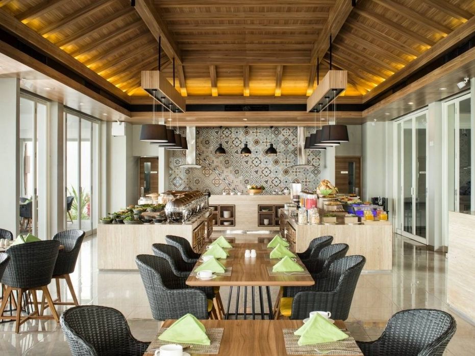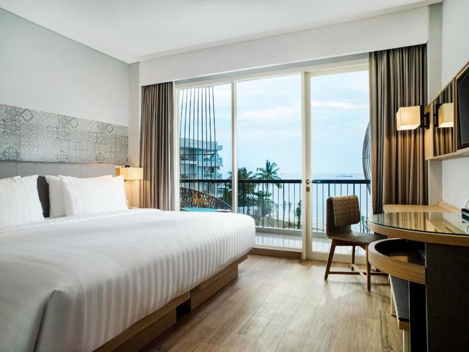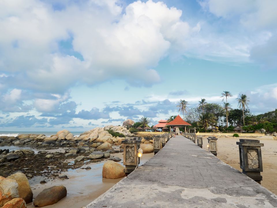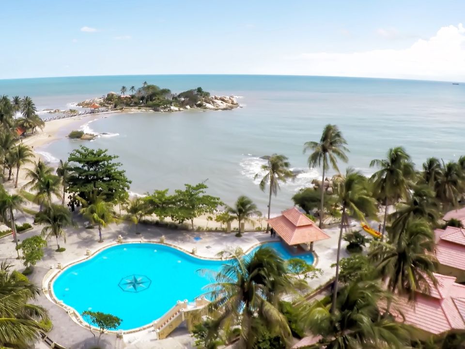 Het Santika Premiere vinden jullie een heel fijn hotel, in moderne stijl gebouwd (is gebruikelijk op het eiland Belitung, op een uitzondering na). Het ligt pal aan het Siguk-strand met uitzicht op rotspartijen in zee, waar je met eb naar toe kunt lopen. Het ligt afgelegen, dus geen andere hotels of restaurants in de nabije omgeving. Dat geldt ook voor de andere strandhotels aan de noordkust.