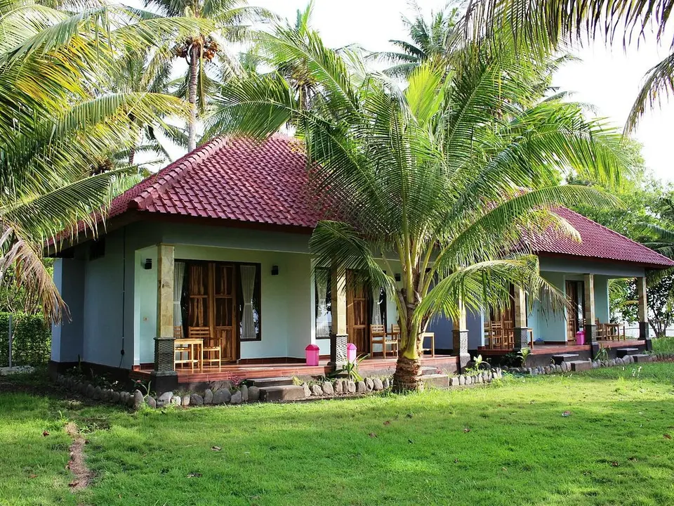 Een klein hotelletje met 8 bungalows, superior en deluxe. Het is eenvoudig maar het is hier heerlijk rustig. De huisjes liggen in een ruime tuin met gras en palmbomen. Het ontbijt is eenvoudig; een pannenkoek, ei met toast of nasi.
