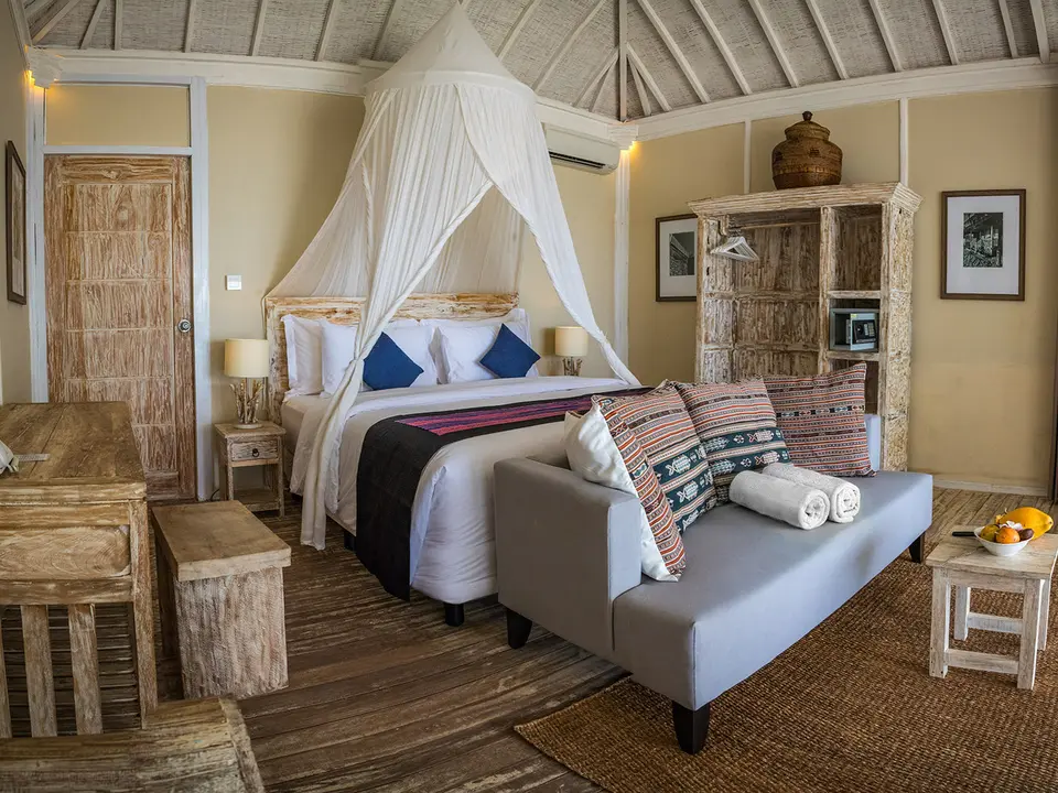 Het resort bestaat uit 23 Beach Bungalows, omgeven door wit zand en weelderige palmbomen.
