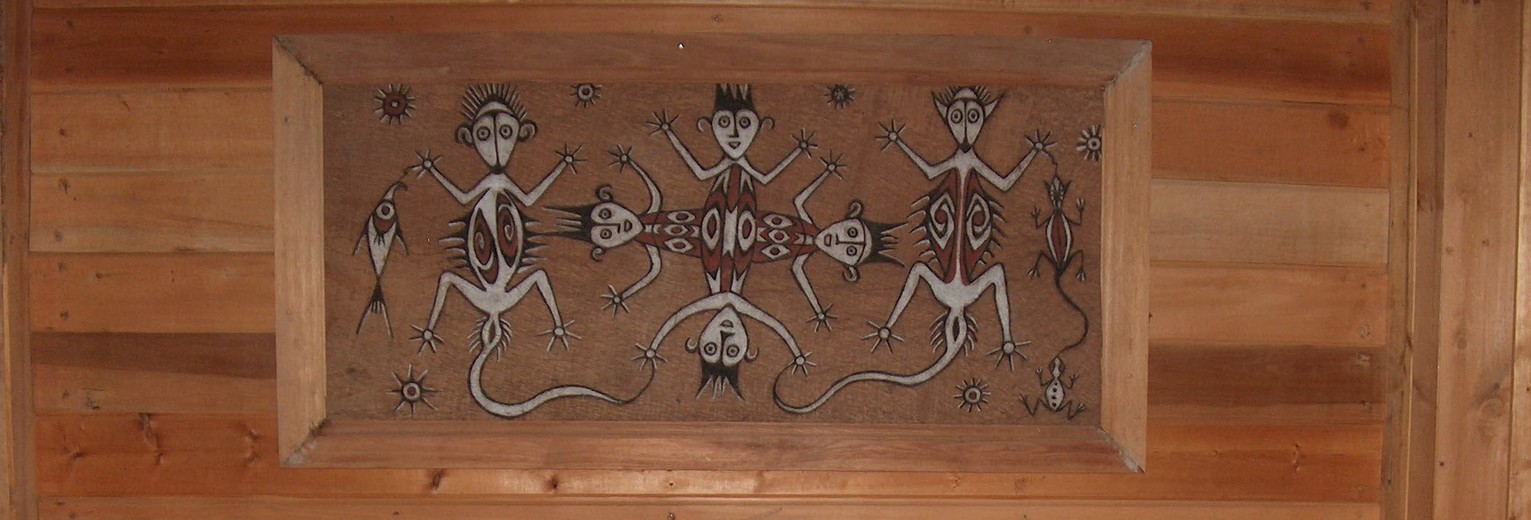 Koop een schilderij op boombast in een van de dorpjes op het Sentani-meer op het eilandje Asei. De lokale bevolking gebruikt de schors van de moerbei- en vijgenboom en beschildert deze met witte, zwarte en rode verf. Vroeger werden deze doeken gebruikt als kleding maar tegenwoordig geldt dit als inkomstenbron van de toeristen die een bezoek brengen aan het eilandje.